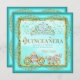 Convite Princesa Quinceañera magia Teal Blue Dourado