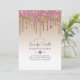 O convite temático (e não a brilho real), moderno e vibrante, pingando ouro rosa, brilha com tendências tipográficas e fontes de estilo manuscrito. Os campos de texto de modelo em ambos os lados do convite permitem que você adicione quaisquer detalhes extras do evento, incluindo rsvp, instruções, detalhes do registro de presentes, recepção e muito mais. Para itens correspondentes, as edições personalizadas do contato Designer LeahG.