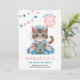 Charming watercolor kitten princess in a sparkling blue dress and crown, surrounded by soft pastel lights. Perfect design for a magical little girl’s birthday celebration.
