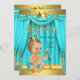 Convite Príncipe Chá de fraldas Dourado Aqua Teal Blonar B