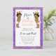 Convite de Revisão de Gênero Azul ou Rosa. Ele ou ela revela o convite da festa com a cor de brilho roxo.