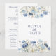 Traga elegância natural para a sua cerimônia com este programa de casamento Jardim de Flores Silvestres Azuis. As suaves flores em tons azuis delicados em aquarela criam um visual sereno e romântico que complementa qualquer tema de casamento atemporal. Personalize todo o texto para incluir a ordem da sua cerimônia, membros da festa de casamento e detalhes especiais. Impresso em papel de alta qualidade, este programa serve tanto como um guia funcional quanto como uma bela lembrança para os convidados. Perfeito para casamentos no jardim, locais rústicos e celebrações clássicas.