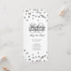 Elegante design de "Programa da Festa de Aniversário" com Confetes Brilhantes em Prata com texto personalizado.