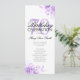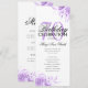 Design de "Programa de Festa de aniversário" elegante com Convênio Floral em Roxo com texto personalizado.