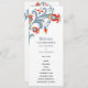 Inspirado no estilo tradicional de pintura norueguesa rosemaling, este programa de casamento apresenta um desenho de borda circular em espiral azul com flores laranja, cinza e vermelhas em um fundo branco. As partes do texto deste convite são personalizáveis. A frente do cartão apresenta a ordem dos eventos, enquanto o verso do cartão apresenta a festa de casamento. Este item faz parte de uma coleção, por favor visite nossa loja Borghild's Boutique para outros itens correspondentes.
