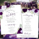 Estes programas de casamento são elegantes e saborosos. A design apresenta um bando de rosas pintados manualmente de aquarelas em tons de roxo, ameixa e violeta poeirentos, cercados por folhas de eucalipto e folhagem de jardim. A tipografia apresenta uma caligrafia antiga em script, e há espaço para detalhes sobre a cerimônia, a festa noiva e um obrigado curto para você. Este programa pode ser descarregado fazer perfeito para uso digital ou para impressão em casa no último minuto.