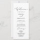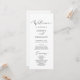 Este delicado programa de casamento impresso ou impresso é perfeito para um casamento moderno. A design romântica minimalista apresenta uma magnífica e elegante tipografia negra num fundo branco com um aspecto simples e limpo. Inclua o nome da noiva e do noivo, a data e o local do casamento, a mensagem do obrigado, a ordem do serviço, a festa noiva e um memorial "em memória amorosa" opcional.