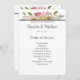 Um Programa de Cerimônia de Casamento desenhado com um Cluster Floral de Rosas Rosa de Aquarela com sotaques verdes. O texto inclui: Nomes de noiva e de noivos, Data de Casamento e Ordem de Serviço em fundo branco. O texto inverso inclui: Nomes dos Pais, Participantes do Casamento da Noiva e do Horário e o Ofício do Serviço. Para personalizar, basta inserir todos os seus detalhes no nosso modelo fácil, substituindo o texto de exemplo.