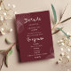 Convites de Programa de Detalhes de Casamento geométricos burgundy Minimalistas. Este convite de casamento simples e elegante é perfeito para qualquer garota sofisticada e elegante. O design é perfeito para um evento de festa estiloso. Personalize este design com sua mensagem e informações personalizadas. Todos os designs são impressos.