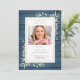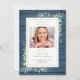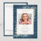 Um programa de memorial de funeral ordem de serviço com folhagem em um fundo de painéis de madeira azul rústico. Criado por Thisisnotme©
