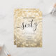 Elegante Glam Dourada Glitter Lights 60th Birthday Script modelo com programa de festas e texto de menus, luzes brilhantes e script de tipografia moderno.