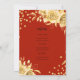 Elegante Glam Dourado Red Floral Glitter aniversário de 30 anos com modelo de Script de Letra Vermelha com programa de festas e texto de menus, arranjos de flores, confete de brilho e script de tipografia moderno.