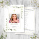 Um elegante programa de memorial funeral de ordem de serviço cristão personalizado com greenery aquarela botânica. Projetado por Thisisnotme©