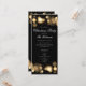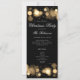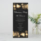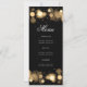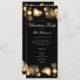 Convite para Festas de Natal Elegante com Programa e Menu que apresentam Flocos de neve e luzes de Natal Feriados no inverno no Dourado.