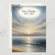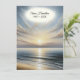 As nuvens de cirros sobre a vista do sol do oceano. Pode ser usado para um serviço de memória ou um funeral. A foto de trás e o texto são editáveis.