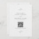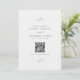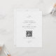 Itinerário do programa de casamento minimalista baseado na tipografia de luxo elegante, com fundo branco de pelúcia e tipografia clássica da cinza escura com sotaque floral botânico. Verifique o código QR para ver os eventos completos do programa.