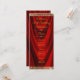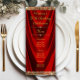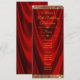 Menu e programa de festa de aniversário em vermelho e dourado com bela borda dourada em fundo de cetim vermelho. Esses menus de festa em vermelho e dourado são facilmente personalizados com o texto de sua escolha na frente e no verso no estilo de fonte que preferir.