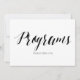Estilo de caligrafia preto e branco simples e elegante para o letreiro de casamento "Programas, por favor, pegue um".
