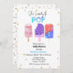 Cartão de convite para picolé de cor branca com trabalho de arte de água de 3 picolé elegante. "ela está pronta para pop! Perfeito para o chá de um garoto de verão