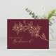 Este convite para apresentação de propostas de casamento floral de ouro burguês apresenta um belo e sofisticado pano de fundo de merlot escuro com elegante caligrafia de ouro e embelezamentos florais dourados. A história da cor da joia e os sotaques botânicos do ouro, juntamente com uma guião minimamente delicada, criam uma estética moderna regal e romântica que estabelece um equilíbrio perfeito entre a tradicional vintagem clássica e o casual contemporâneo, fazer uma escolha fácil para uma variedade de casamentos e eventos. Tal como acontece com todos os nossos designs, se tiverem perguntas ou pedidos especiais de coordenação de produtos, por favor contactem-nos.