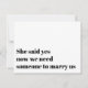 Peça ao seu celebrante para casar com você com este cartão de proposta de celebrante com tipografia moderna que diz: Ela disse sim, agora precisamos de alguém para nos casar, você será nosso celebrante?
