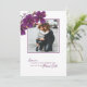 Um lindo cartão de proposta de dama de flores apresenta flores roxas violeta vibrantes em aquarela acentuadas por pontos de brilho dourado falso. Fácilmente personalizável com sua foto e mensagem especial.