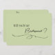 Um design elegante de caligrafia mínima em verde sage com uma combinação de texto clássica e mensagem simples. Adicione o nome da noiva e do noivo e a data do casamento no coração no verso. Você pode alterar a palavra dama de honra para outro título para atender às suas necessidades.