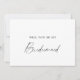 Um cartão postal caligráfico elegante com uma proposta de noiva é perfeito para um casamento moderno. O design minimalista romântico apresenta uma tipografia preta bonita e elegante em um fundo branco com uma aparência limpa e simples. Personalize o cartão postal. Personalize o verso do cartão postal com uma mensagem personalizada.