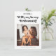 Compartilhe os detalhes do seu casamento com suas damas de honra com este cartão elegante, apresentando letra retro elegante, foto personalizada e detalhes editáveis. Personalize facilmente clicando na opção "personalizar".