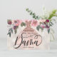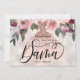 Convite de Proposta de Dama de Quince Anos Floral Moderno. Design com vestido rosa dourado, elementos florais em um fundo pérola brilhante e brilho rosa dourado falso no verso. Personalize com um nome.
