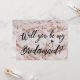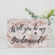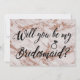 Peça à sua família e amigos para fazerem parte do seu casamento com estes cartões de proposta de damas de honra elegantes, apresentando textura de mármore em dourado rosa e caligrafia. Personalize com um nome e mensagem no verso.
