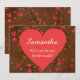 Uma proposta de dama de honra encantadora, este item apresenta um desenho de coração em um fundo marrom, há um coração vermelho brilhante com seu modelo dentro. Personalize o seu hoje!