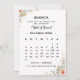 Este cartão de proposta de madrinha de casamento tem um calendário editável e uma fonte de letra requintada. Altere o mês e preencha as datas para cada dia do mês. Na seção de personalização, clique no botão azul 'editar usando a ferramenta de design' para mover o coração.