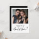 Convite simples, elegante e na moda, de madrinha de casamento a preto e branco. O Design apresenta a foto do solteiro e a letra 'vai ser minha madrinha de casamento' em letra de texto tradicional.