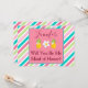 Uma maneira encantadora de pedir à sua Madrinha de casamento para fazer parte do seu casamento, este convite apresenta um adorável fundo rosa, verde e azul diafronicamente riscado com uma caixa rosa e azul no meio. A caixa tem uma modelo para personalizar o nome dela com "Você será minha Madrinha de casamento?" escrito em lindas fontes burgundy. Personalize o seu hoje! Design do convite: WeddingsbyRhoadie Background stripes: AMBilustrações http://www.etsy.com/shop/AMBillustrations/ Pineapple e flores: Prettygrafik design (https://www.etsy.com/shop/Prettygrafikdesign)