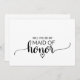 Este simples cartão de madrinha de casamento de caligrafia negra é perfeito para um casamento temático rústico ou moderno. A design minimalista apresenta uma elegante letra de escrita de pincel e um adorável coração feminino. A parte de trás é vazio, então você terá bastante espaço para escrever uma nota personalizada e ponderada.