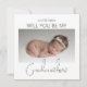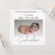 Peça ao seu melhor amigo, irmã ou primo para ser a madrinha do seu bebê com este maravilhoso cartão com fotos minimalista de dois lados, apresentando uma bela foto do seu bebê, fazendo a pergunta e, no verso, outra foto com uma mensagem de modelo, os estilos de fonte e a cor de fundo podem ser alterados clicando no link personalizado após personalizar.