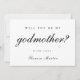 Cartão de proposta de madrinha com tipografia preta "você será minha madrinha". Esta proposta de padrinho tem um estilo minimalista e moderno em preto e branco, com uma cor rosa-bege editável na parte de trás do cartão.