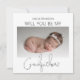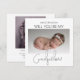 Peça ao seu melhor amigo, irmão ou primo para ser o padrinho do seu bebê com este lindo cartão de foto de 2 lados minimalista, Apresentando uma foto fofa do seu bebê, fazendo a pergunta e no verso outra foto com uma mensagem modelo, os estilos de fonte e cor de fundo podem ser alterados clicando no link personalizar ainda mais após personalizar.