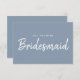 Proposta de Bridesmaid da Caligrafia Azul Moderna e Minimalista. Cartão de pedido e convite do partido de noiva. Apresenta a fonte de moda e na moda e cor azul empoeirada pastel.