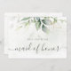 Cartões de madrinha de casamento bonitos com aquarela eucalipto e folhas de ouro.
