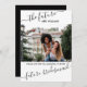 Cartão personalizado de pedido de casamento para as damas de honra com foto e nomes personalizados. O design tem um tema de cores preto e branco minimalista com tipografia de letra manuscrita. O modelo de foto está configurado para você adicionar sua própria imagem na frente e você também pode adicionar o nome da noiva e o nome da dama de honra. A redação diz "a futura [nome da noiva], gostaria que você, [nome da dama de honra] fosse sua dama de honra". A tipografia e as cores do fundo podem ser alteradas - por favor, clique em personalizar mais - ou envie-me uma mensagem para obter assistência.
