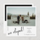 Envie uma design de fotos instantânea e fofa para seus anúncios de casamento com esta tipografia, nota moderna. Com caligrafia negra. Disponível com texto tipográfico "nós fugimos", "recem casados", "somos casados" e "nos casamos".