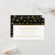 Cartão de recepção de casamento moderno preto, contas de folha de ouro e listras com um padrão de corda com bolas de folha de ouro com brilho metálico no topo que parecem contas em uma corda e uma faixa dourada em fundo preto e seus detalhes em branco. Este design de modelo de casamento elegante e sofisticado é totalmente personalizável e é perfeito para um casamento contemporâneo. Note que NÃO HÁ FOLHA DE OURO REAL, APENAS IMAGENS IMPRESSAS.