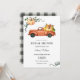Convide os entes queridos a celebrarem a noiva a serem! Apresenta uma ilustração aquosa de um caminhão laranja cheio de abóboras e folhagem no outono. Personalize com seu texto. Clique em "Personalizar mais" para editar o estilo, o tamanho e a cor da fonte, se desejar.