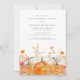 As abóboras de queda estão aninhadas em delicadas flores silvestres amarelas do ouro e laranja para criar uma estética elegante. Todo o texto é editável para que você possa facilmente artesanato seu próprio humor especial.