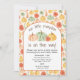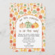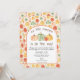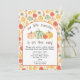These baby shower invites feature a pattern of watercolor painted pumpkin and gourds for an autumn baby shower.