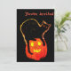 Gato preto de arte de Halloween brilhando com hump no topo laranja brilhando abóbora na frente com texto laranja Você é convidado. A parte de trás tem fundo preto com preenchimento de texto laranja Em suas próprias informações. Design de desenho animado.