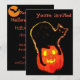 Convite Pumpkin Laranja Brilhante de Gato Preto do Hallowe