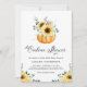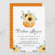 Se apaixonem! Este tema do outono online apresenta abóbora aquarela com girassol amarelo, algodão e folhas de eucalipto. Personalize adicionando nomes, data, hora, local e outros detalhes do evento. Este convite de girassol rústico é perfeito para casamentos no outono ou no outono.